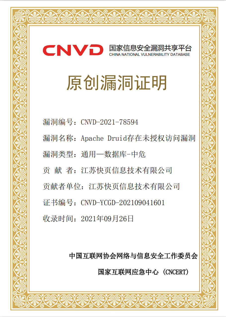 快页喜获2项CNVD原创漏洞证明证书 近日,快页喜获2项CNVD原创漏洞证明证书。CNVD原创漏洞证明,是对某产品中某一系列型号所存在的历史未公开或是未发现的漏洞进行的证明,是对漏洞挖掘的能力认证。... 阅读全文 > 2023/02/02
